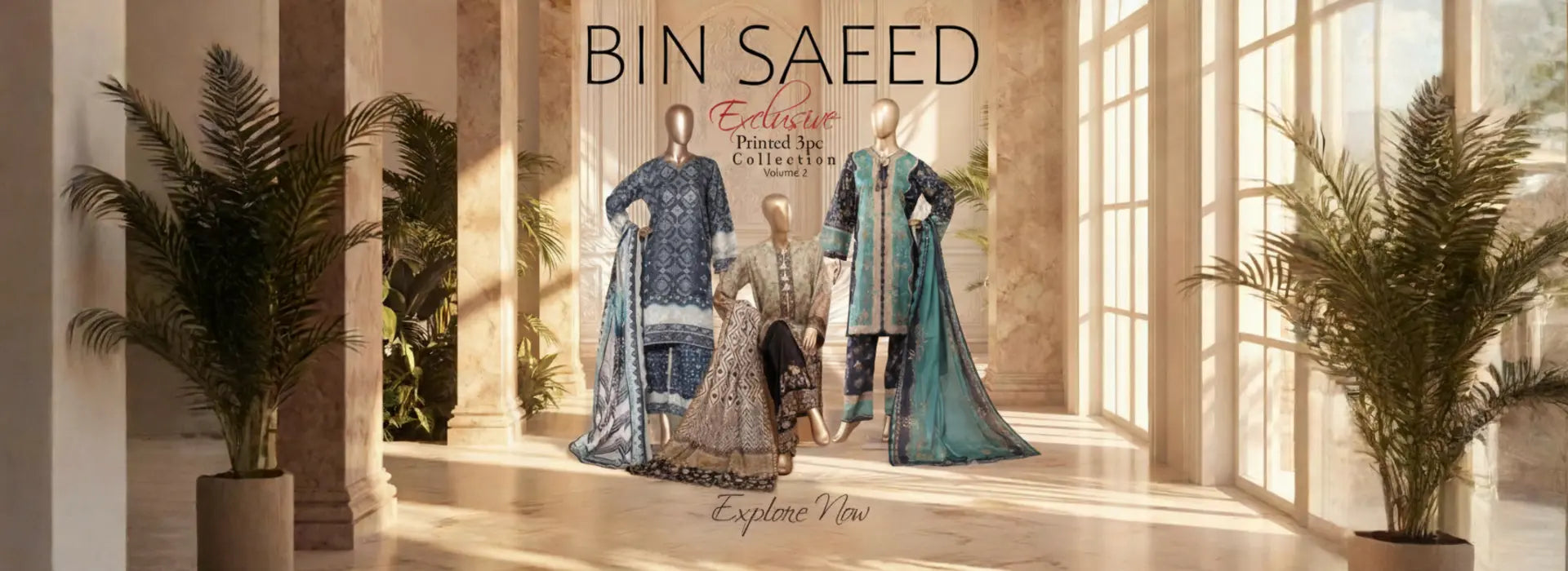BinsaeedLawn Embroided 3pc (D-66-B)