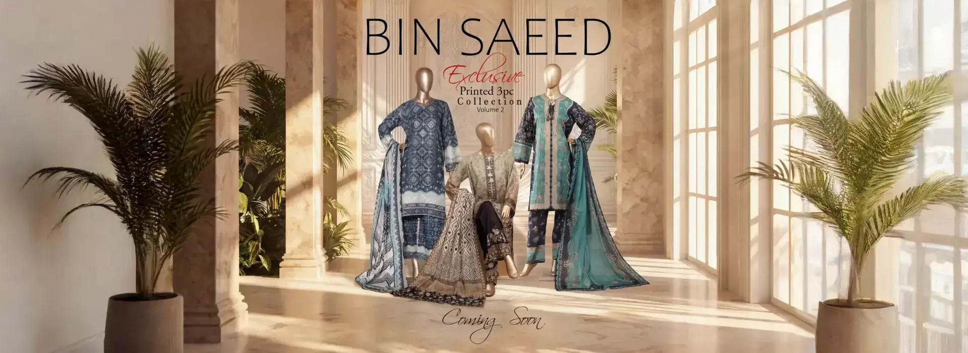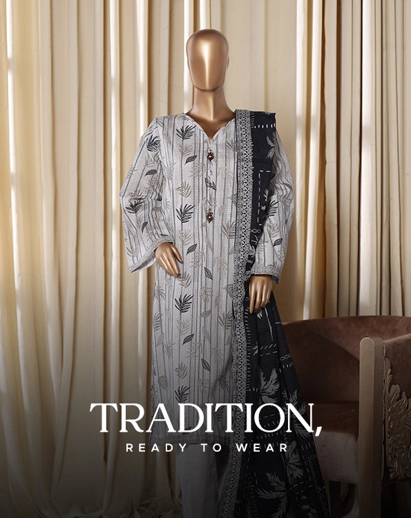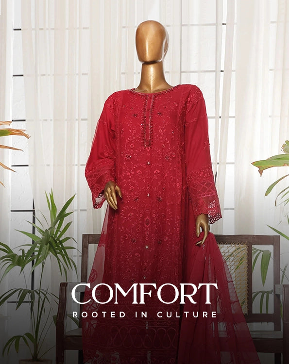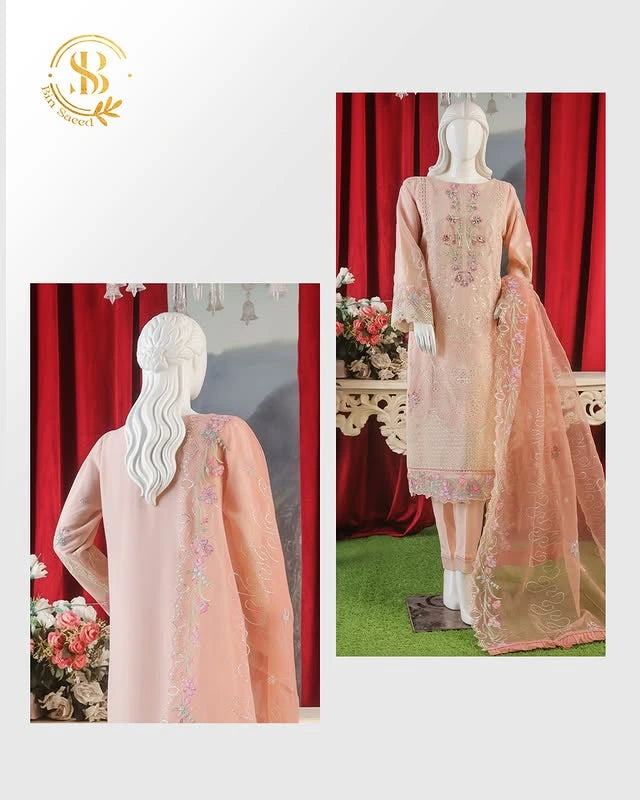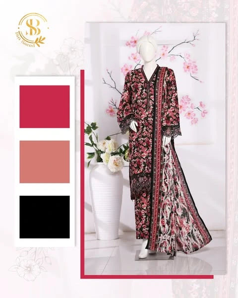 Bin saeed Stithed Plain Cotton 3pc (D 028-B)