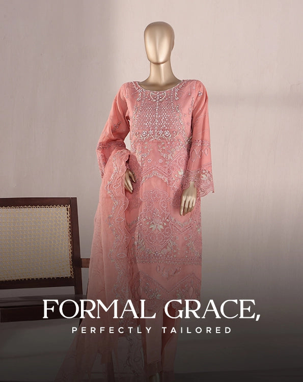 Bin saeed Stithed Plain Cotton 3pc (D 024-O)