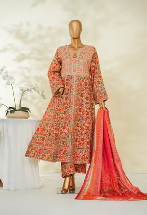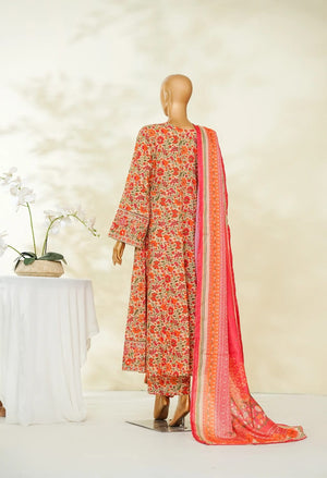 Binsaeed Lawn Embroidered 3pc (lsmkorange)