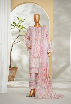Binsaed Stitched Pink Printed 3pc (LSM016)