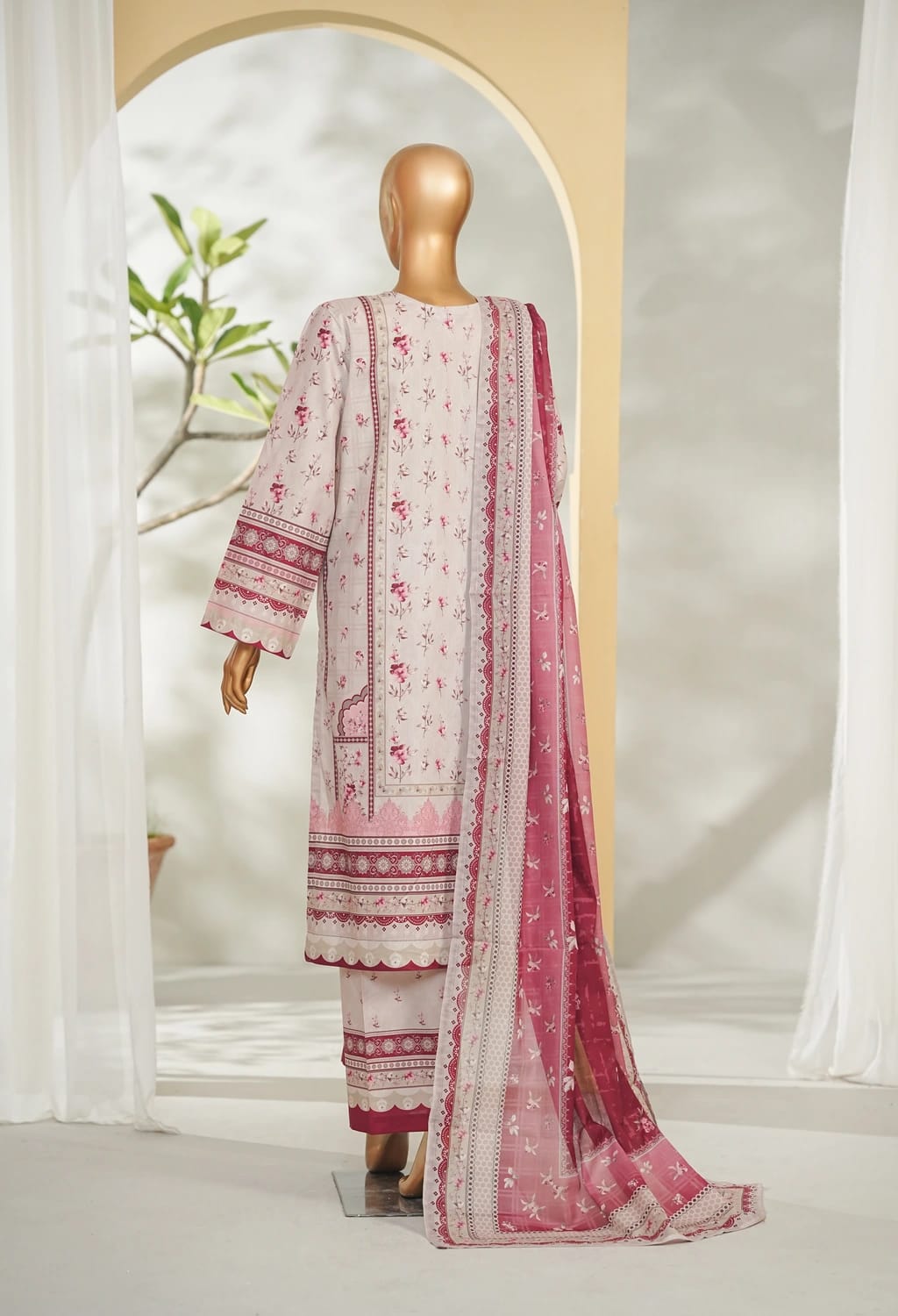 Binsaeed Stitched Pink Printed Lawn 3pc (LSM018)