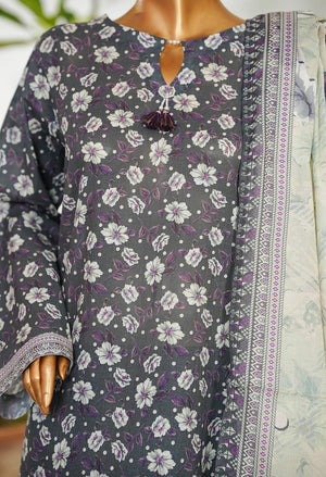 Binsaeed Stitched Gray Printed Lawn 3pc (LSM031)