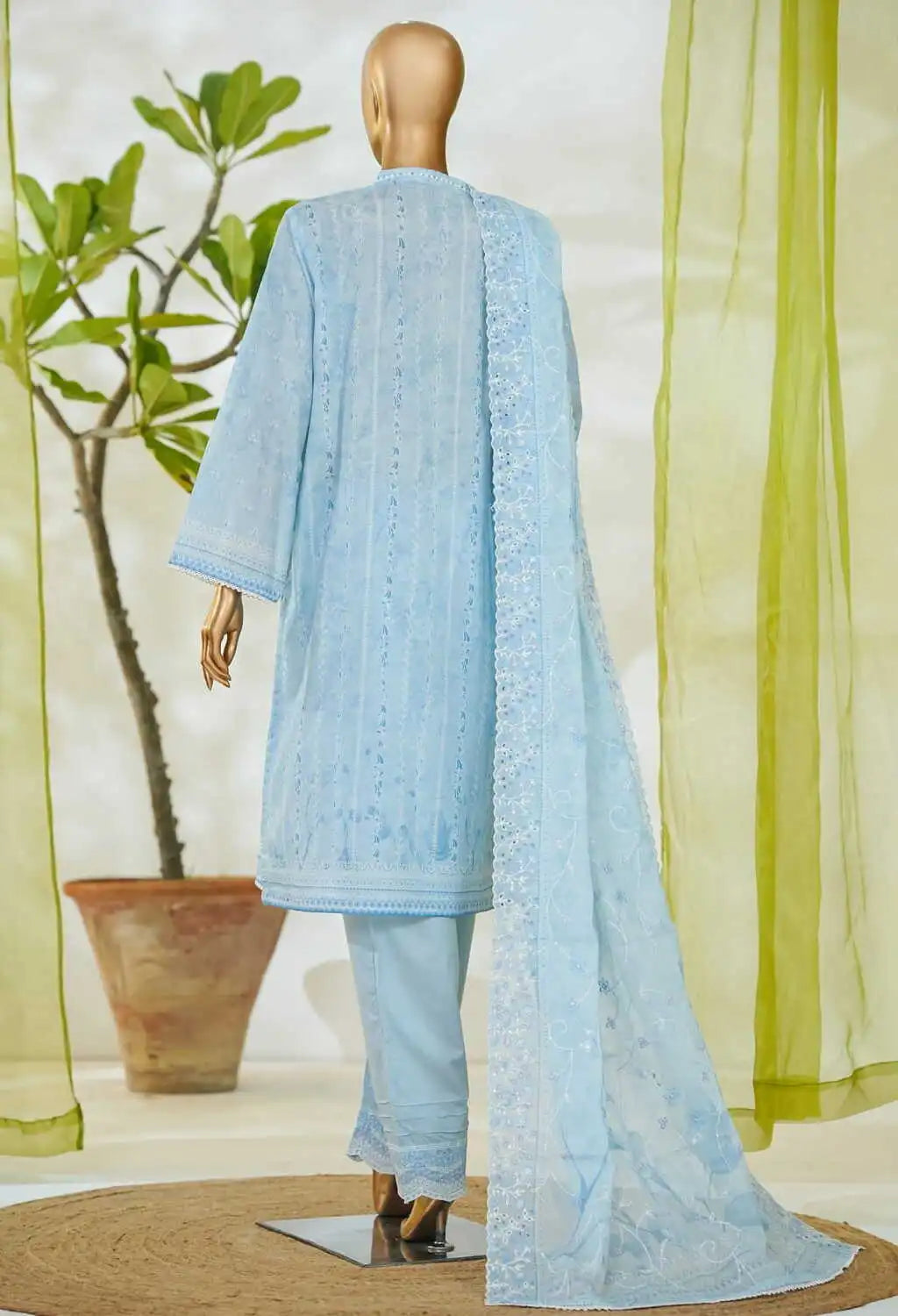 Home Binsaeed Stitched Ferozi Embroidered Lawn 3pc (NSM 0219-B)