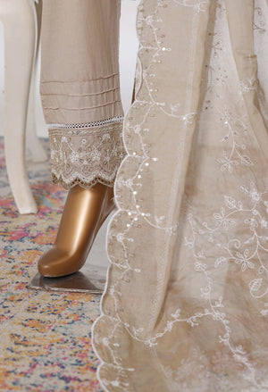 Embroidered shirt paired with an embroidered trouser and embroidered dupatta.