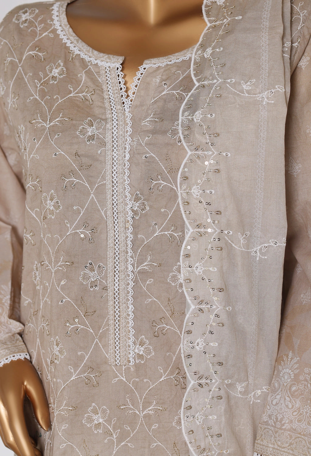 Embroidered shirt paired with an embroidered trouser and embroidered dupatta.
