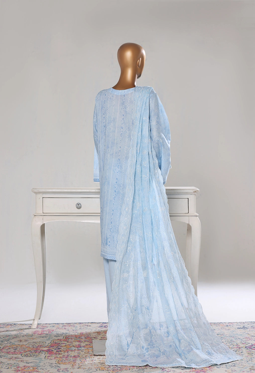 Home (Binsaeed Stitched Ferozi Embroidered Lawn 3pc NSM 0226-BED)