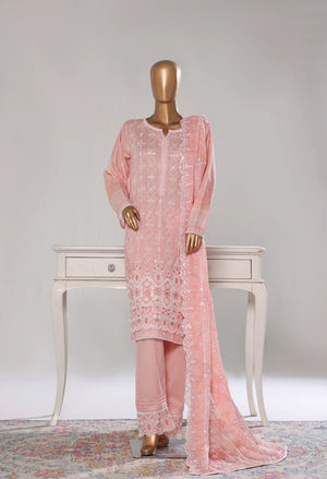 Binsaeed Stitched Peach Embroidered Lawn 3pc  (NSM 0227-B)
